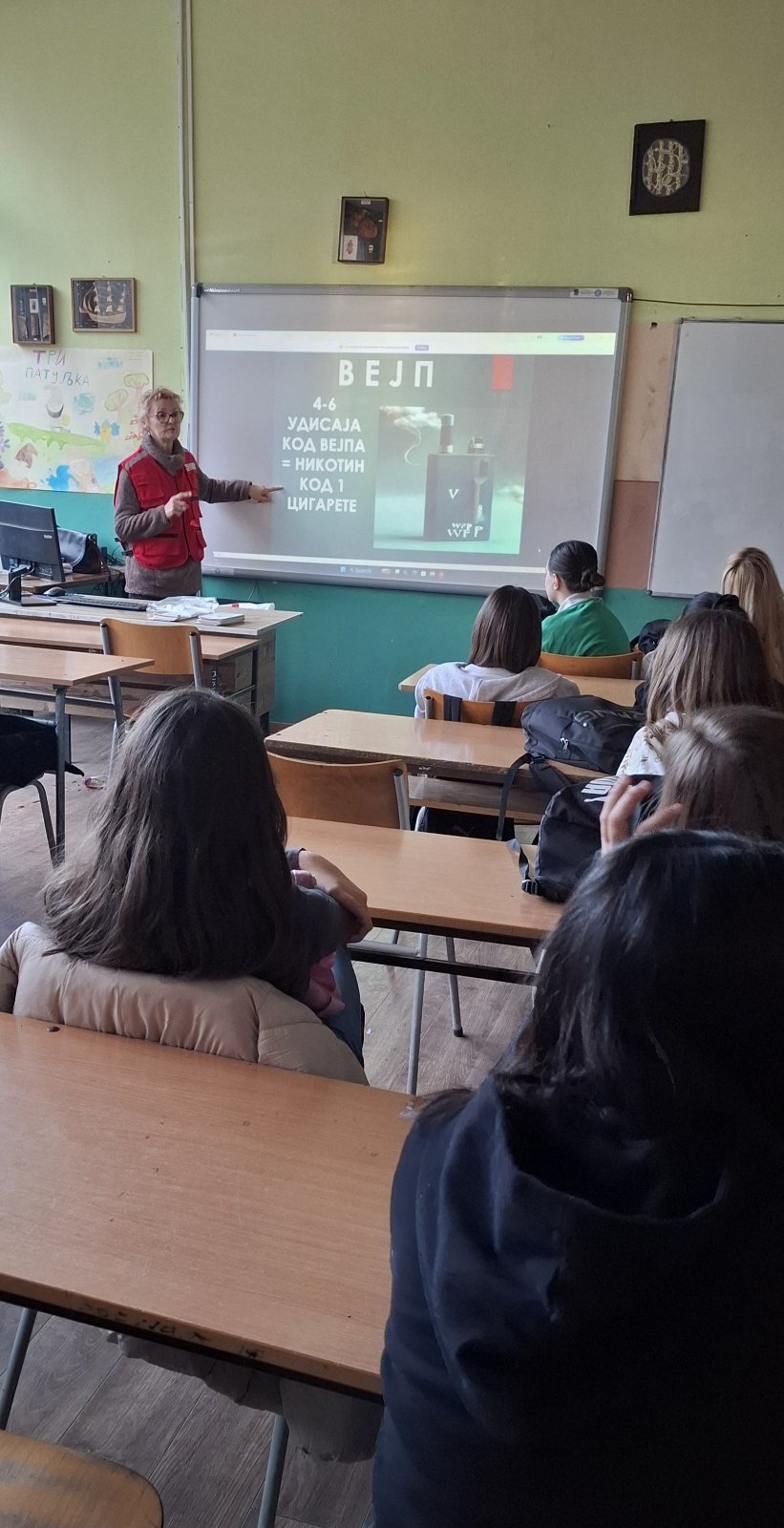 Активност је започета презентацијом која је ученицима на прилагођен и разумљив начин приближила штетне последице употребе дуванских производа. Посебан акценат стављен је на све чешће присутне алтернативне облике конзумирања никотина, попут снус производа и електронских цигарета (вејпова), као и на начине препознавања и избегавања изазова и притисака вршњака.