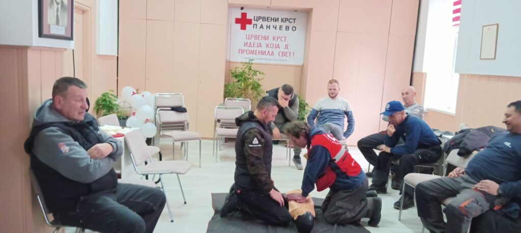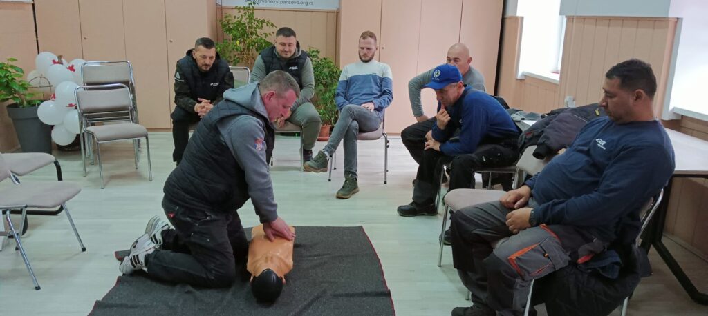 Организоване су основне и напредне обуке прве помоћи, прилагођене специфичностима радних места и потенцијалним ризицима у радном окружењу. Полазници су имали прилику да, стекну знања и вештине за правилно реаговање у хитним ситуацијама – од пружања прве помоћи код повреда и наглих стања, до поступања у ситуацијама које захтевају брзу и смирену реакцију пре доласка стручних служби.